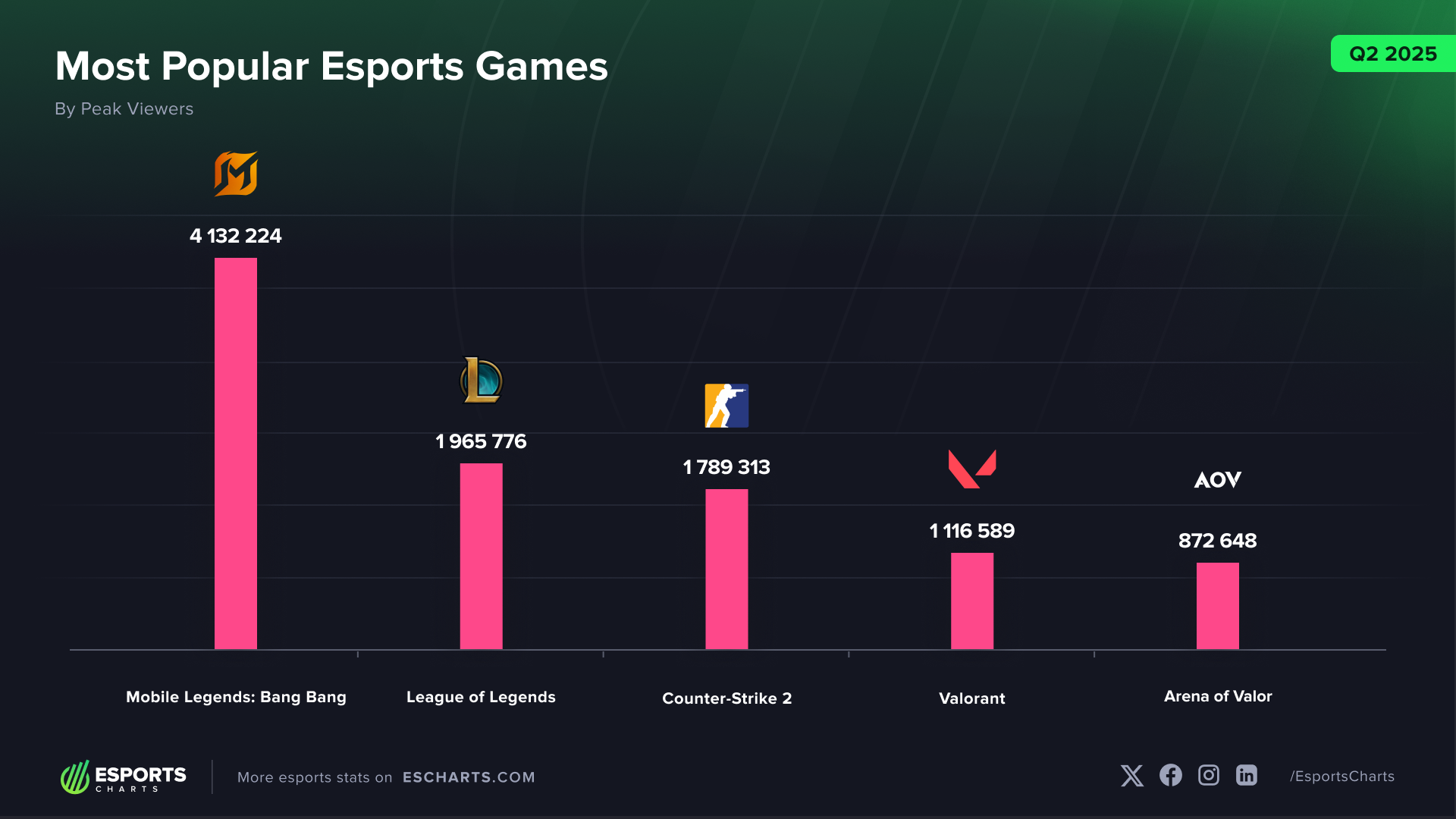 2025年第二季度,决胜巅峰电竞收视数据继续领先 (数据来源:Esports Charts)